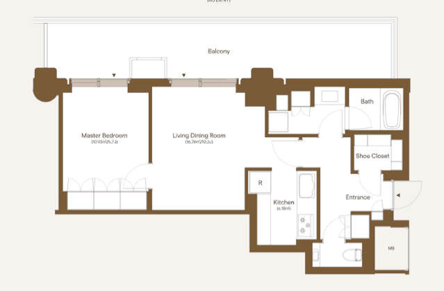| Floor Space: | 56.76 Square Meters 1 Bedroom, 1 Bathroom |